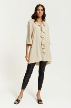 These vegan leather trousers are the ideal addition to your wardrobe this season. They are wide leg and finished with a Double Second branded button.