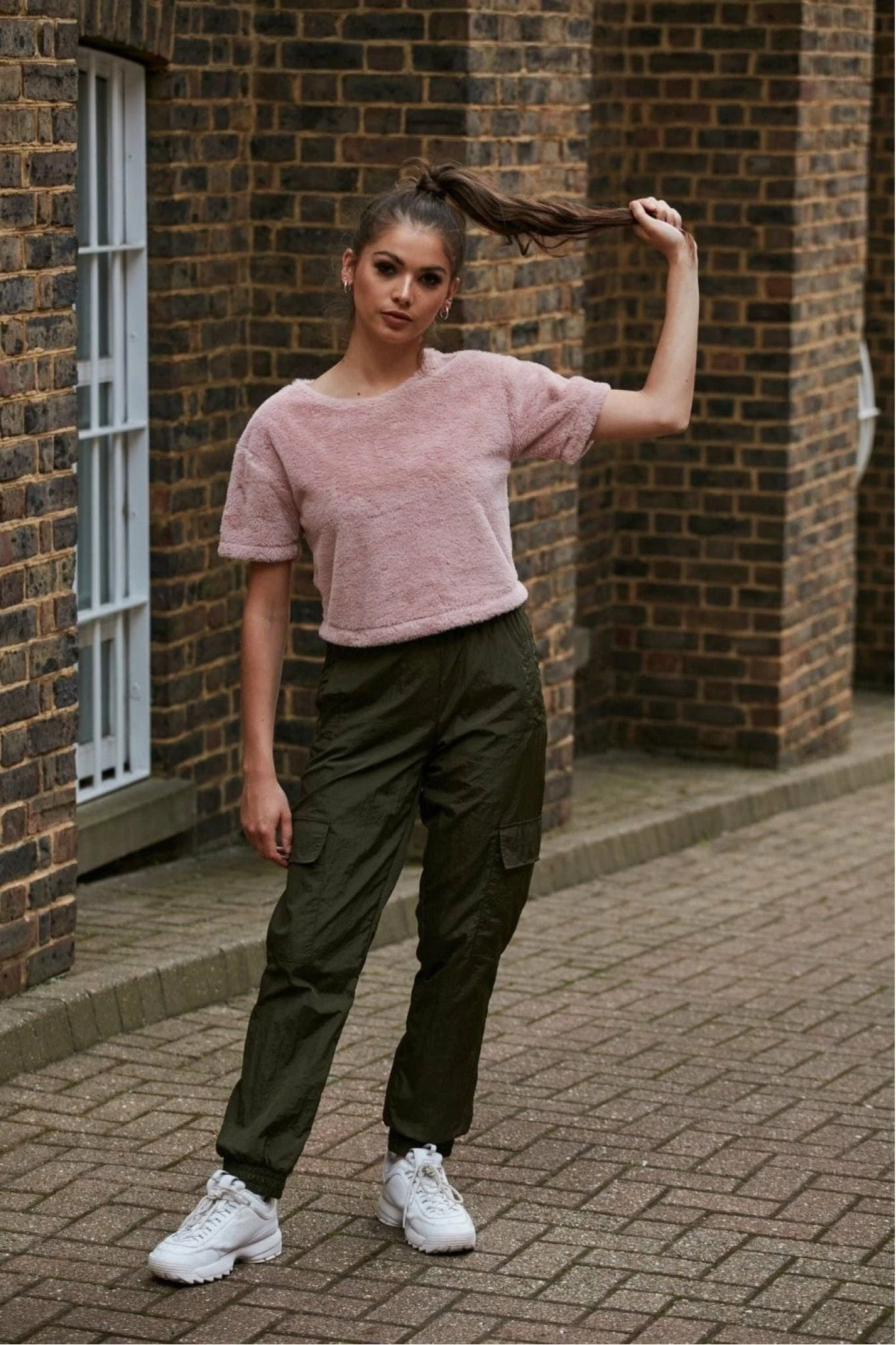 These cargo trousers are perfect for the casual occasions. They boast a hammered crinkled fabric, functional pockets on the side of each leg and cuffed hems.