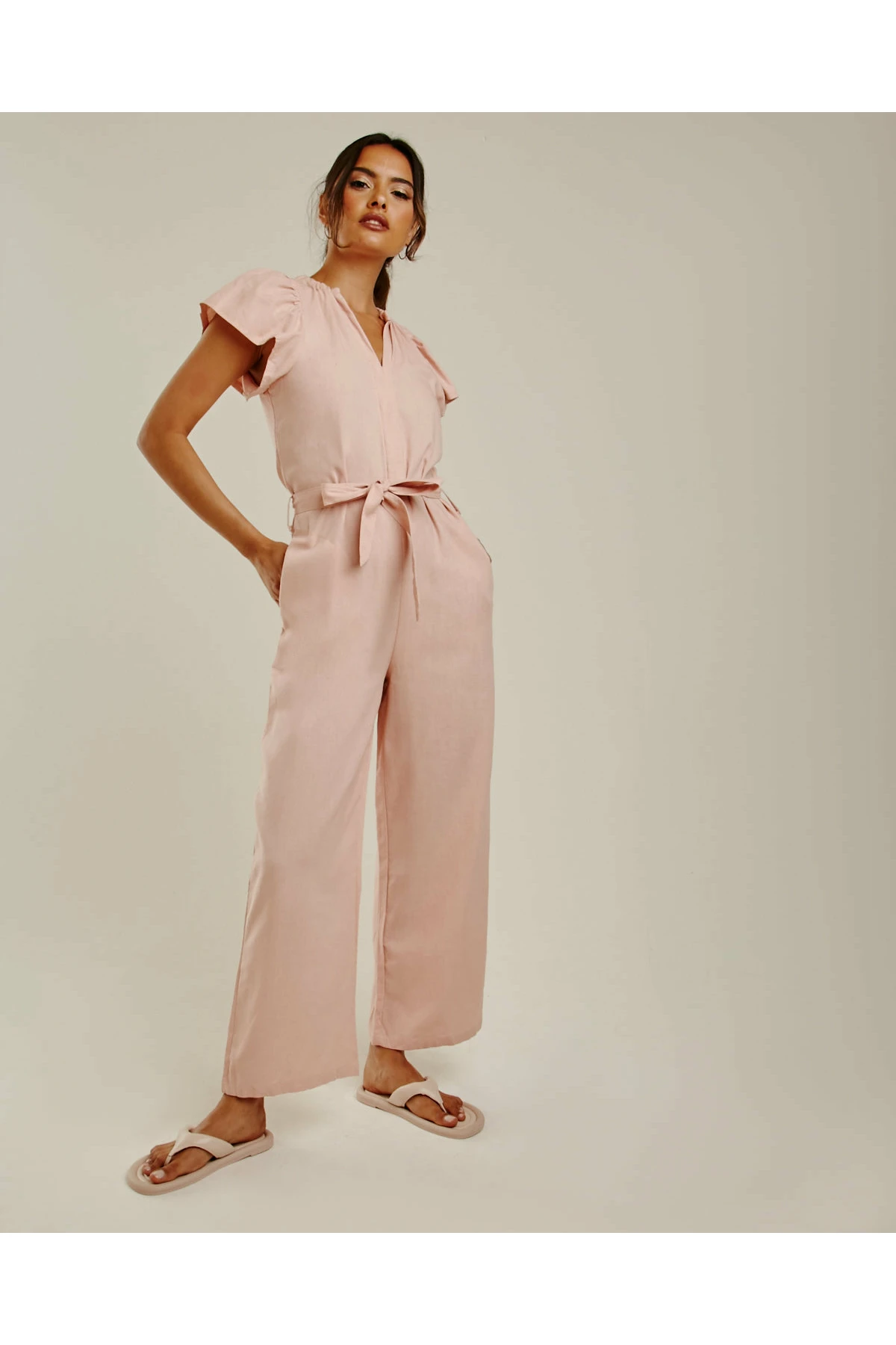 Dusty Pink Wide Leg Belted Jumpsuit | Light Rose