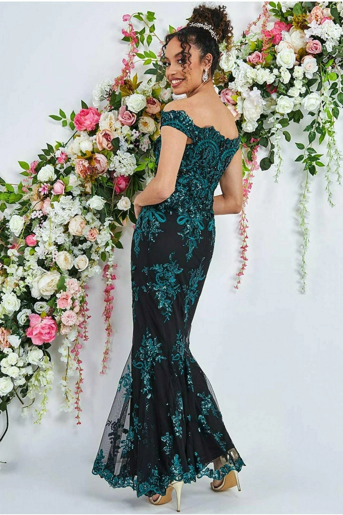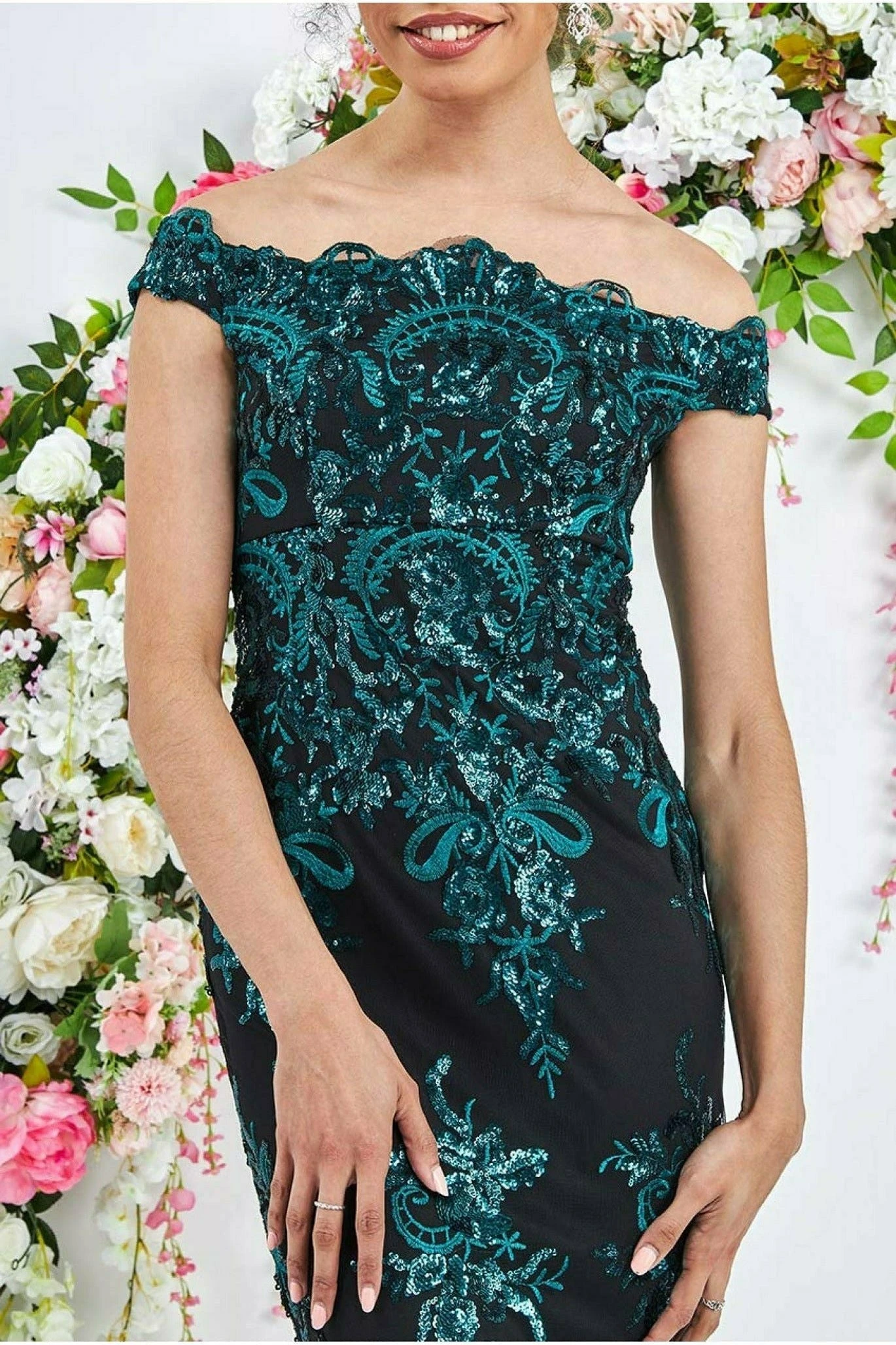 Be the first to review “Goddiva Bardot Sequin Embroidered Maxi Dress – Emerald Green” Cancel reply