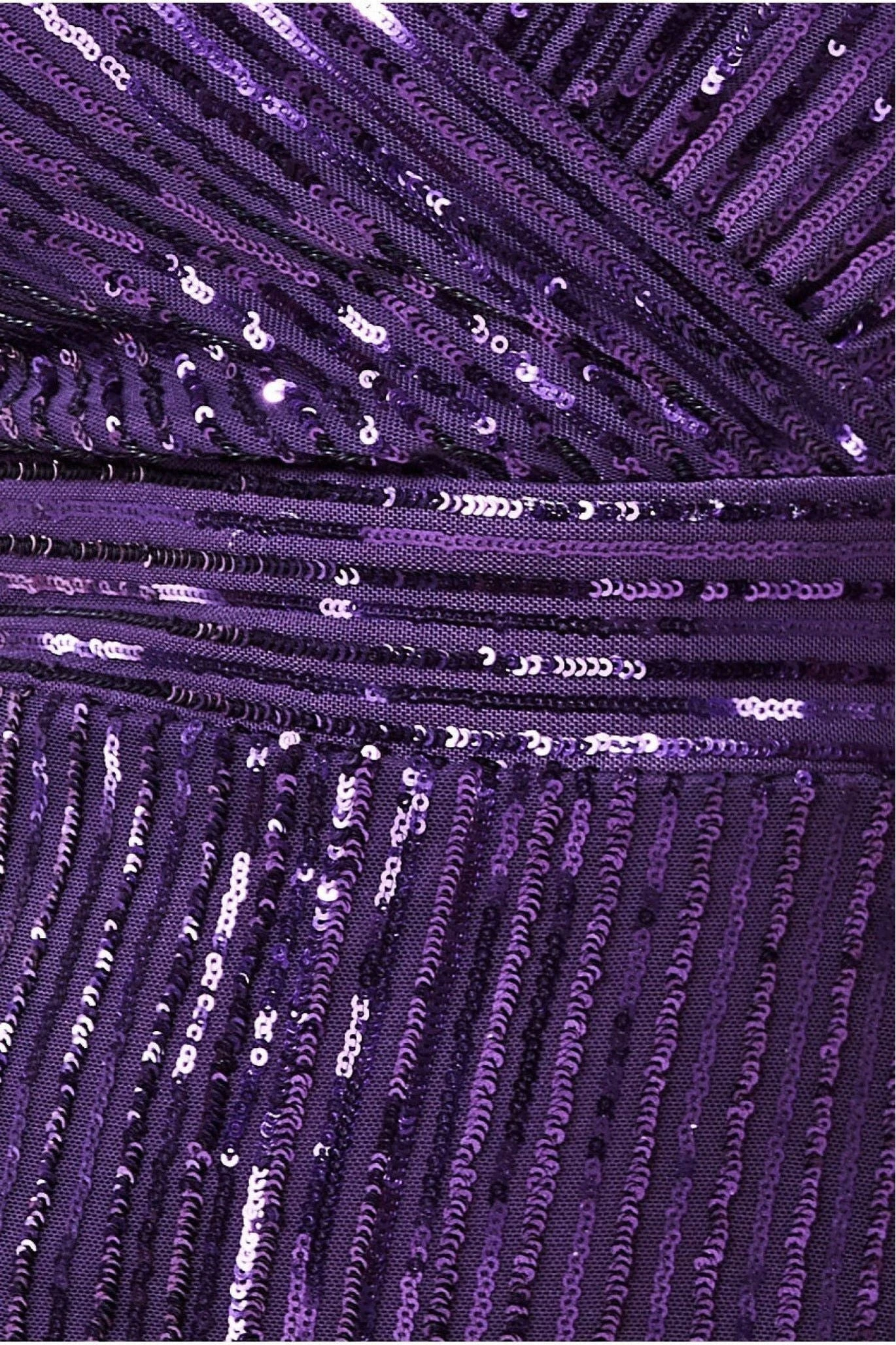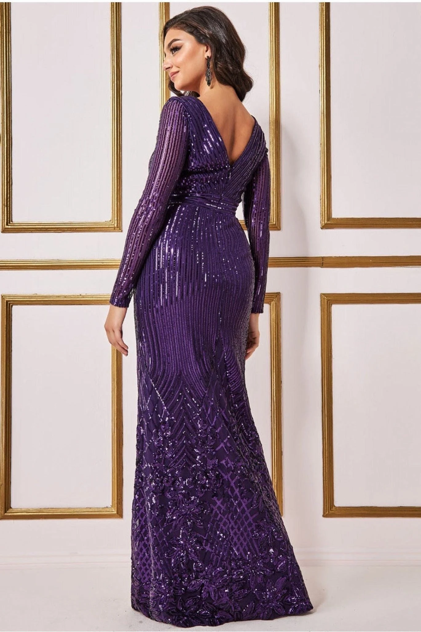 Goddiva Long Sleeve Sequin V Wrap Maxi Dress – Purple