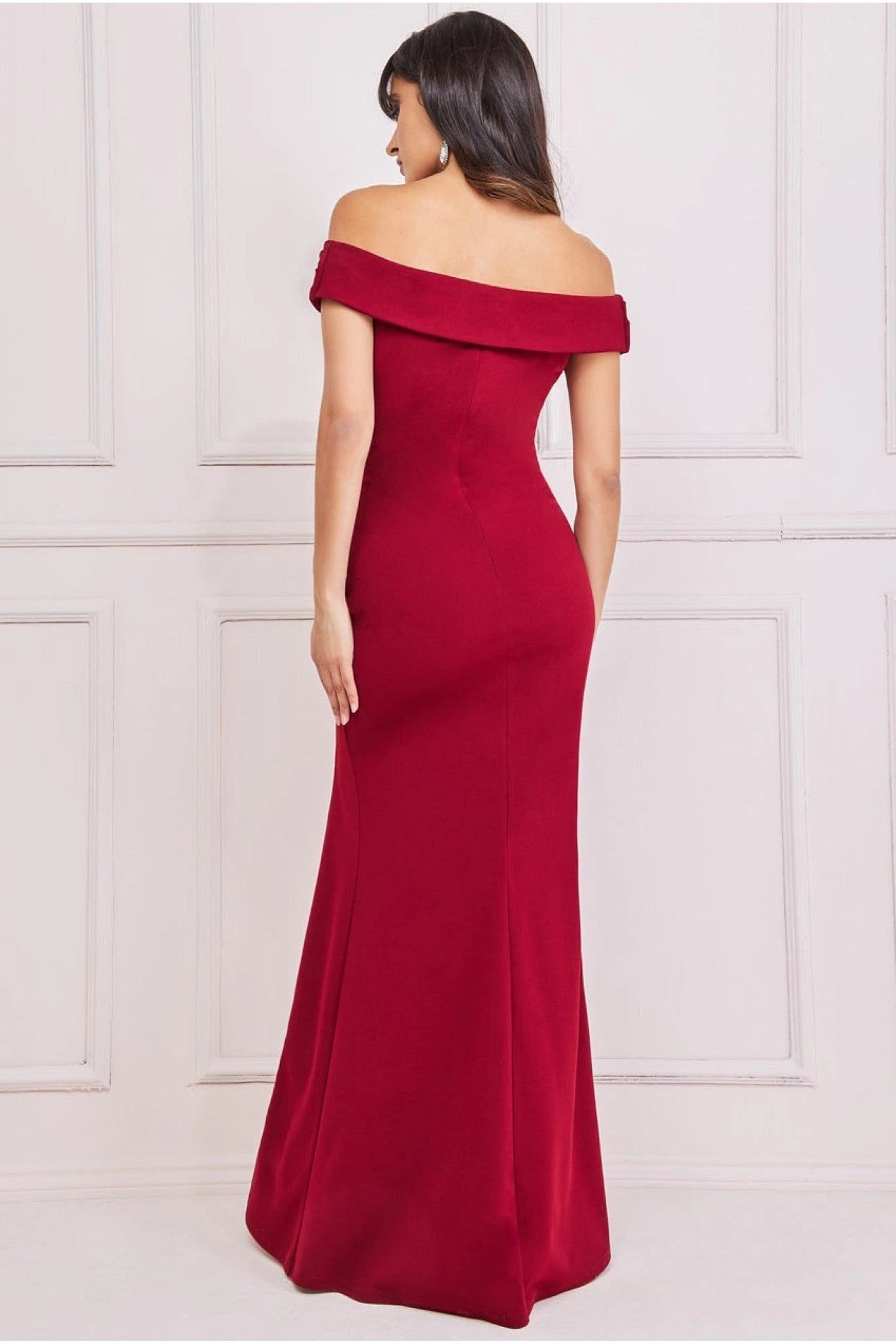 Goddiva Off The Shoulder Maxi With Split – Wine