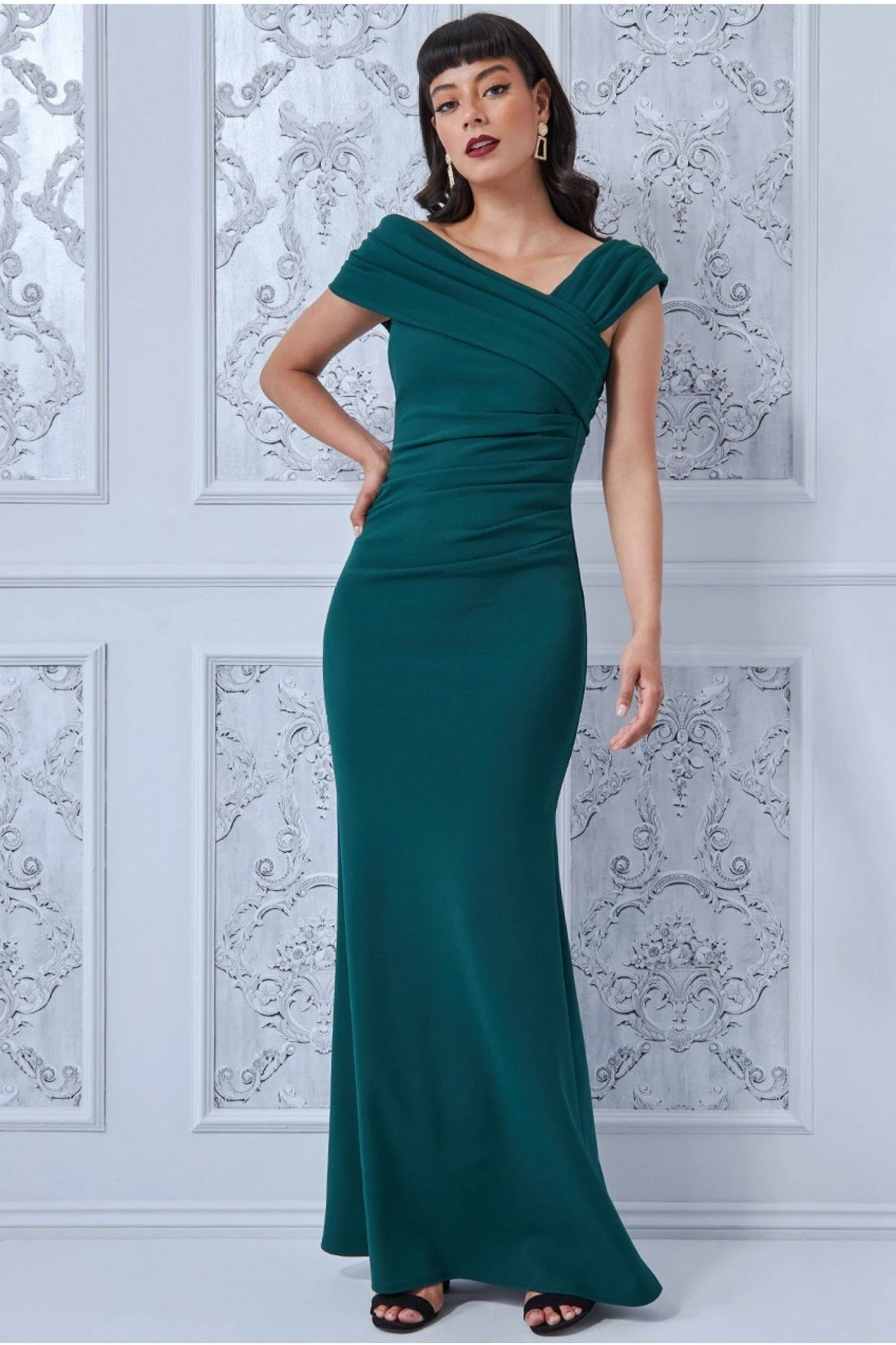 This impressive one-shoulder evening maxi occasion dress is the perfect piece for any formal evening occasion. This fruitful Goddiva long evening gown is simply beautiful. With its on-trend one-shoulder style and its bodycon fit, this evening dress will definitely become your forever dress. Its classically elegant emerald colour makes this dress perfect for bridesmaids, wedding guests, black-tie events and even prom. This affordable dress will serve you from occasion to occasion, season to season.Â