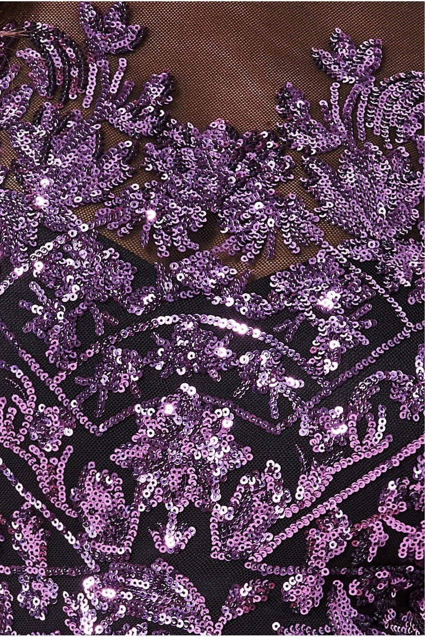 Goddiva Sequin Mesh Embroidered Maxi Dress – Purple