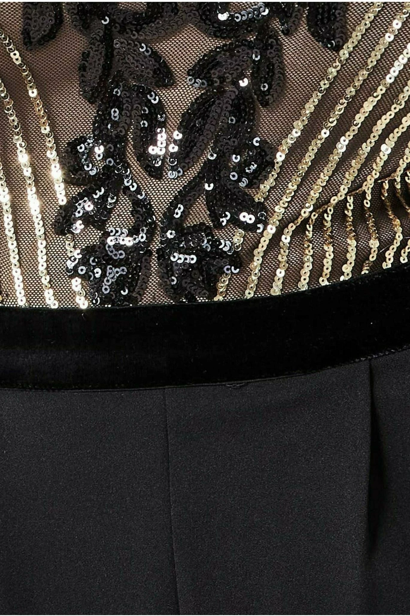 Goddiva Sequin & Mesh Jumpsuit – Black