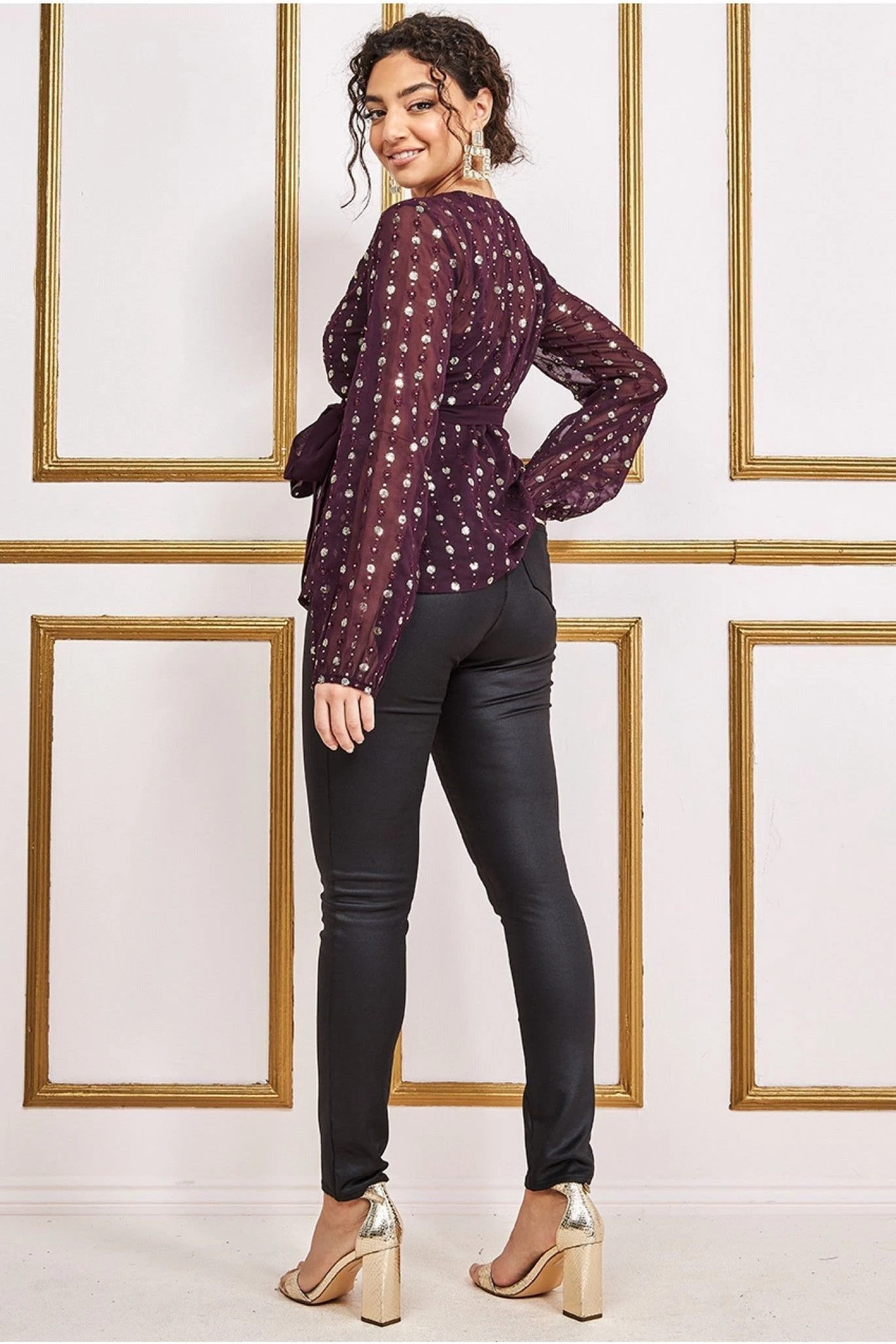 Be the first to review “Goddiva Wrap Sequin Top With Cami – Wine” Cancel reply