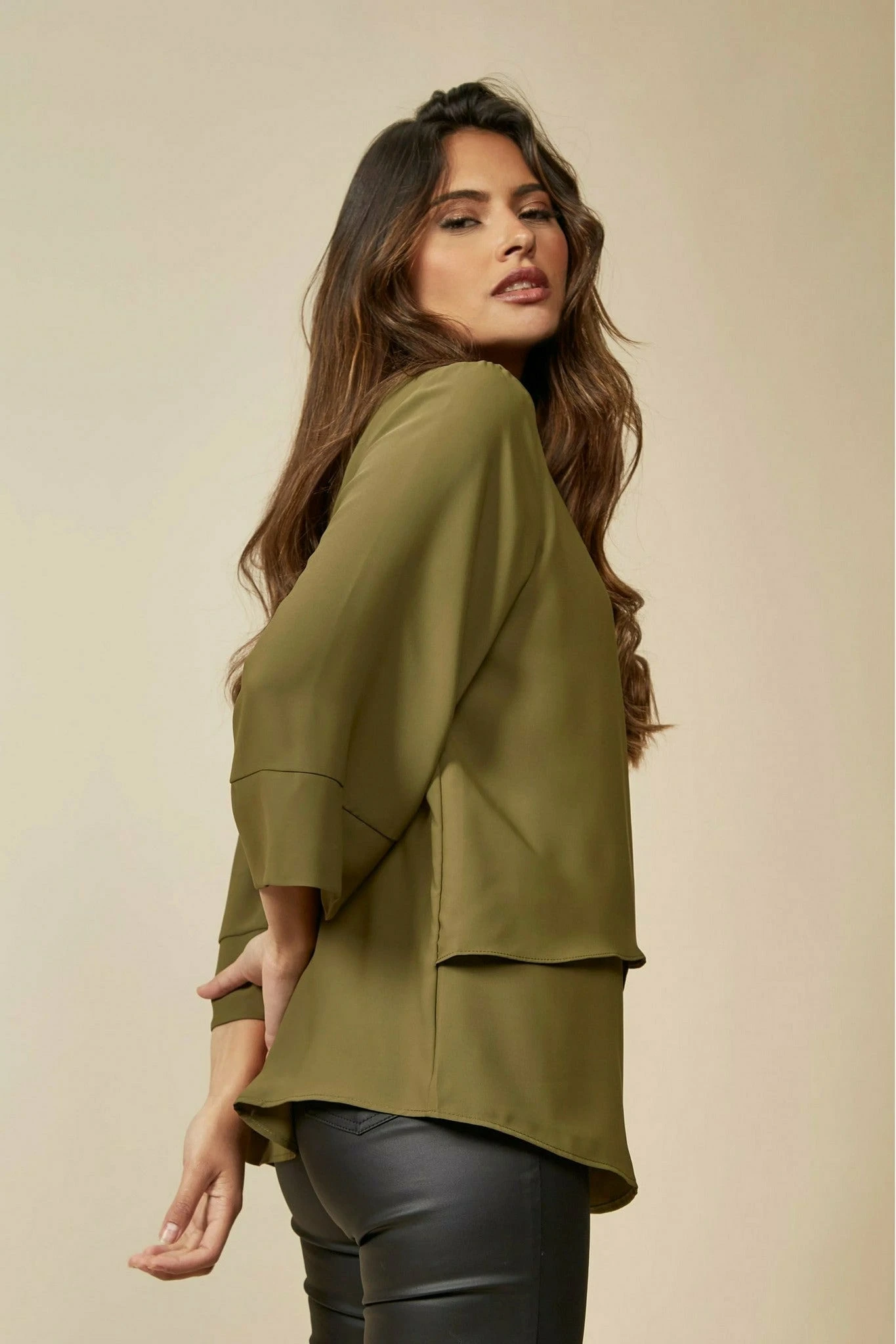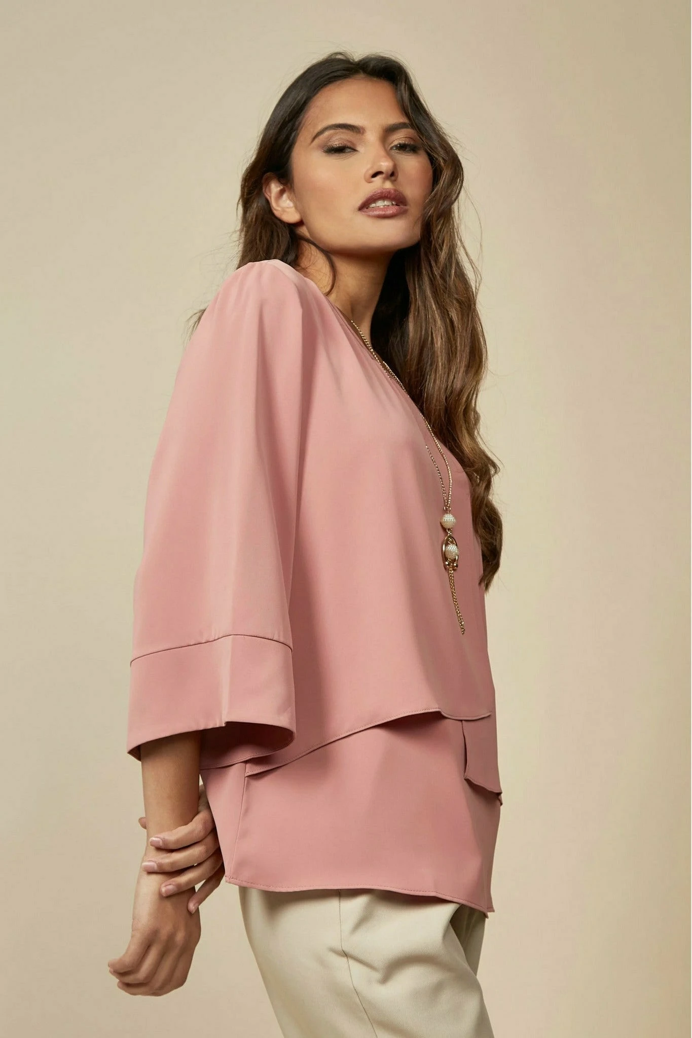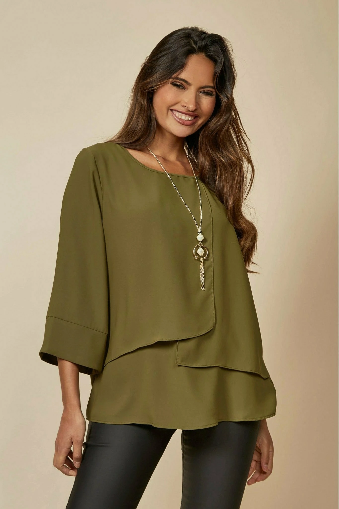 Hoxton Gal Layered Top 3/4 Sleeve With Necklace
