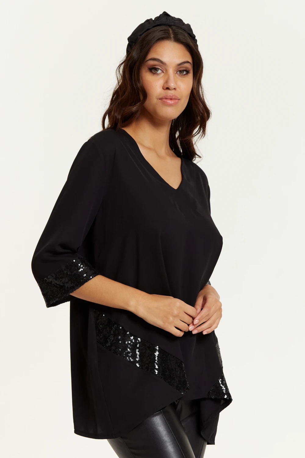 Hoxton Gal Oversize V Neck Sequin Detail Satin Top