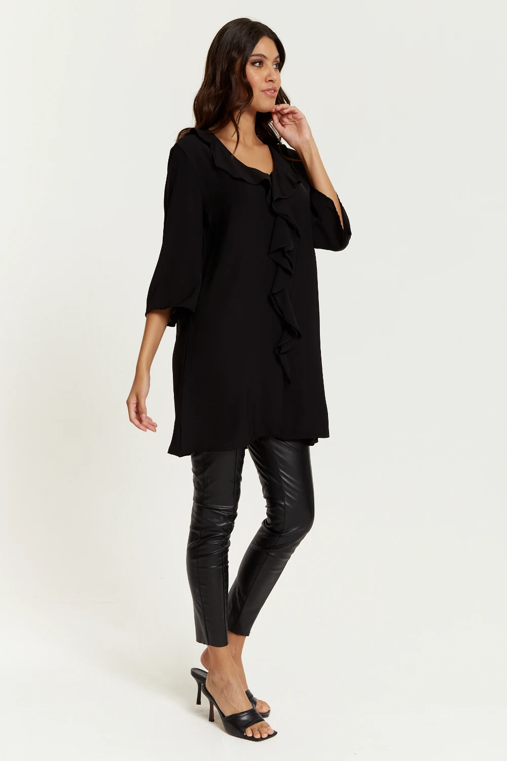 Hoxton Gal Oversized Frill Detailed 3/4 Sleeves Tunic Shirt