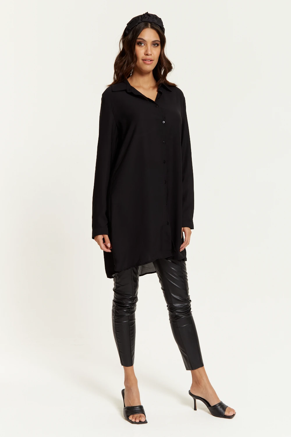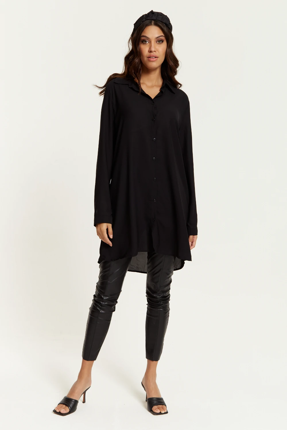 Hoxton Gal Oversized Shirt Tunic With Long Sleeves In Black