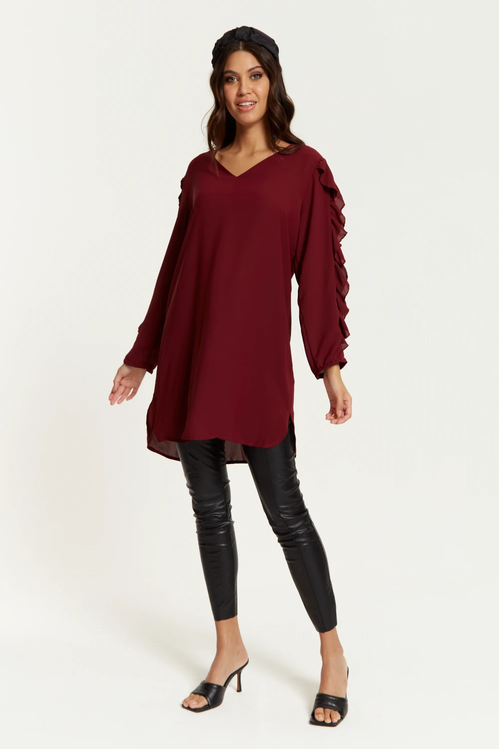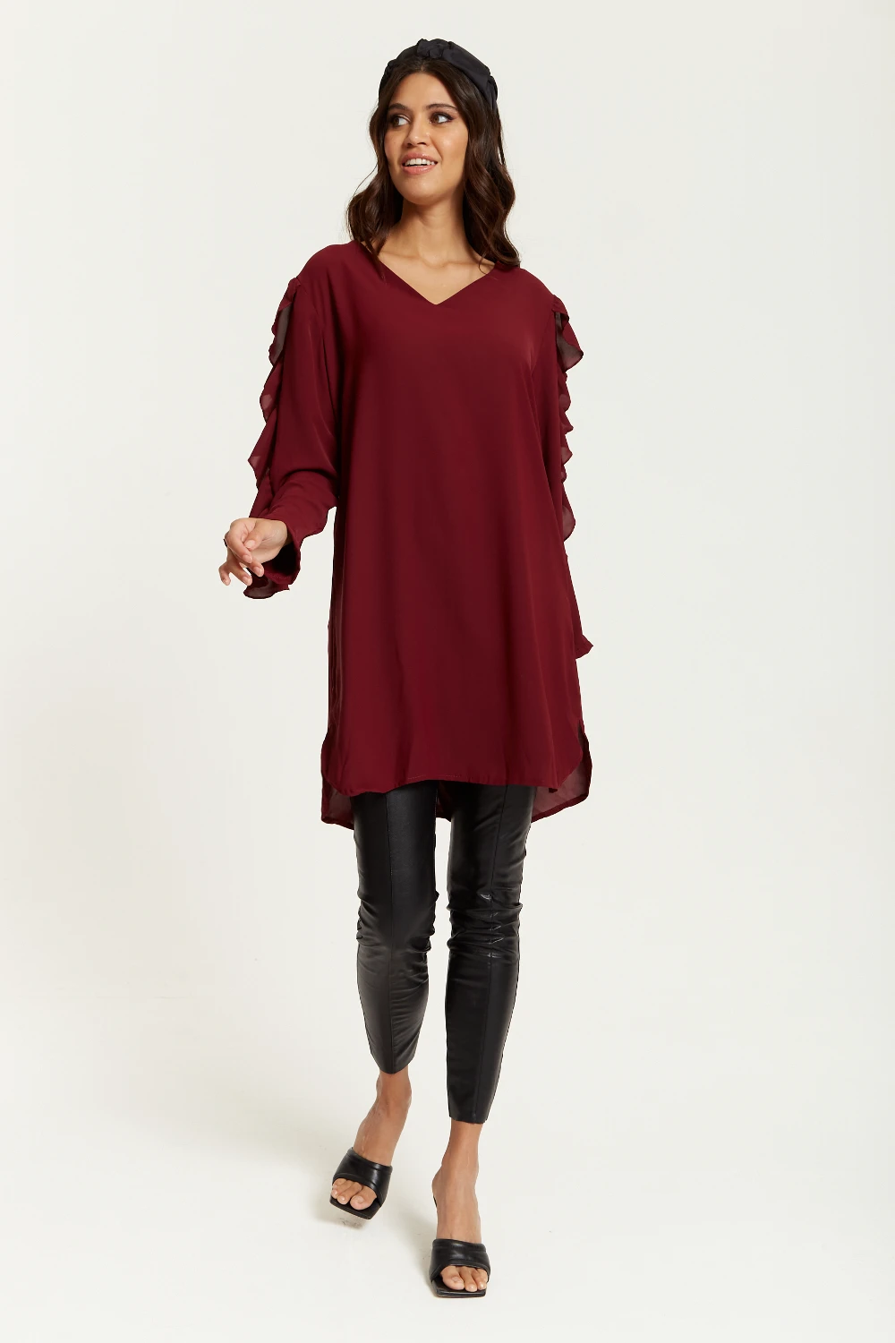 Be the first to review “Hoxton Gal Oversized V Neck Ruffle Sleeves Tunic In Burgundy” Cancel reply
