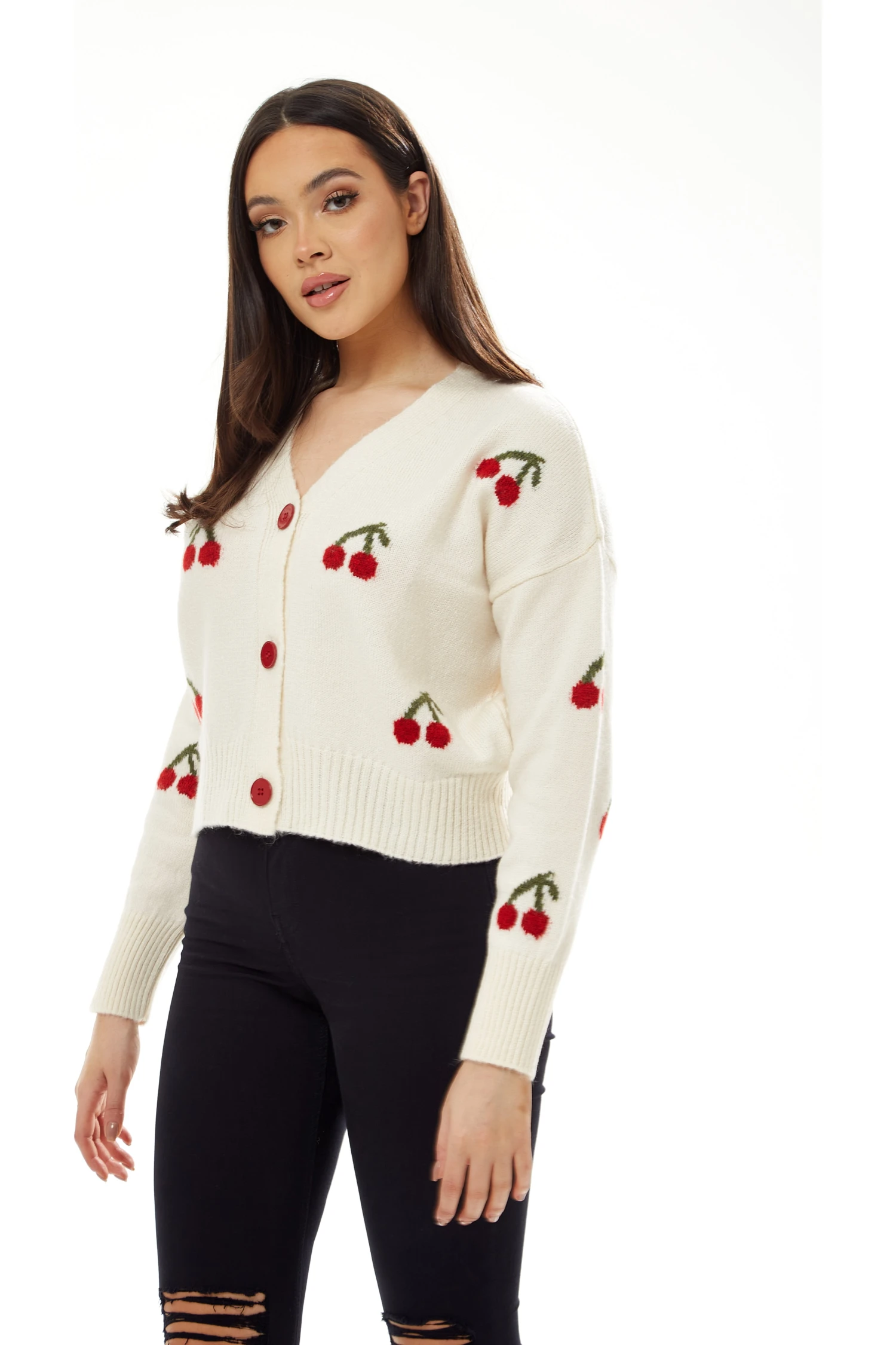 Liquorish Cherry Pattern Cardigan in White