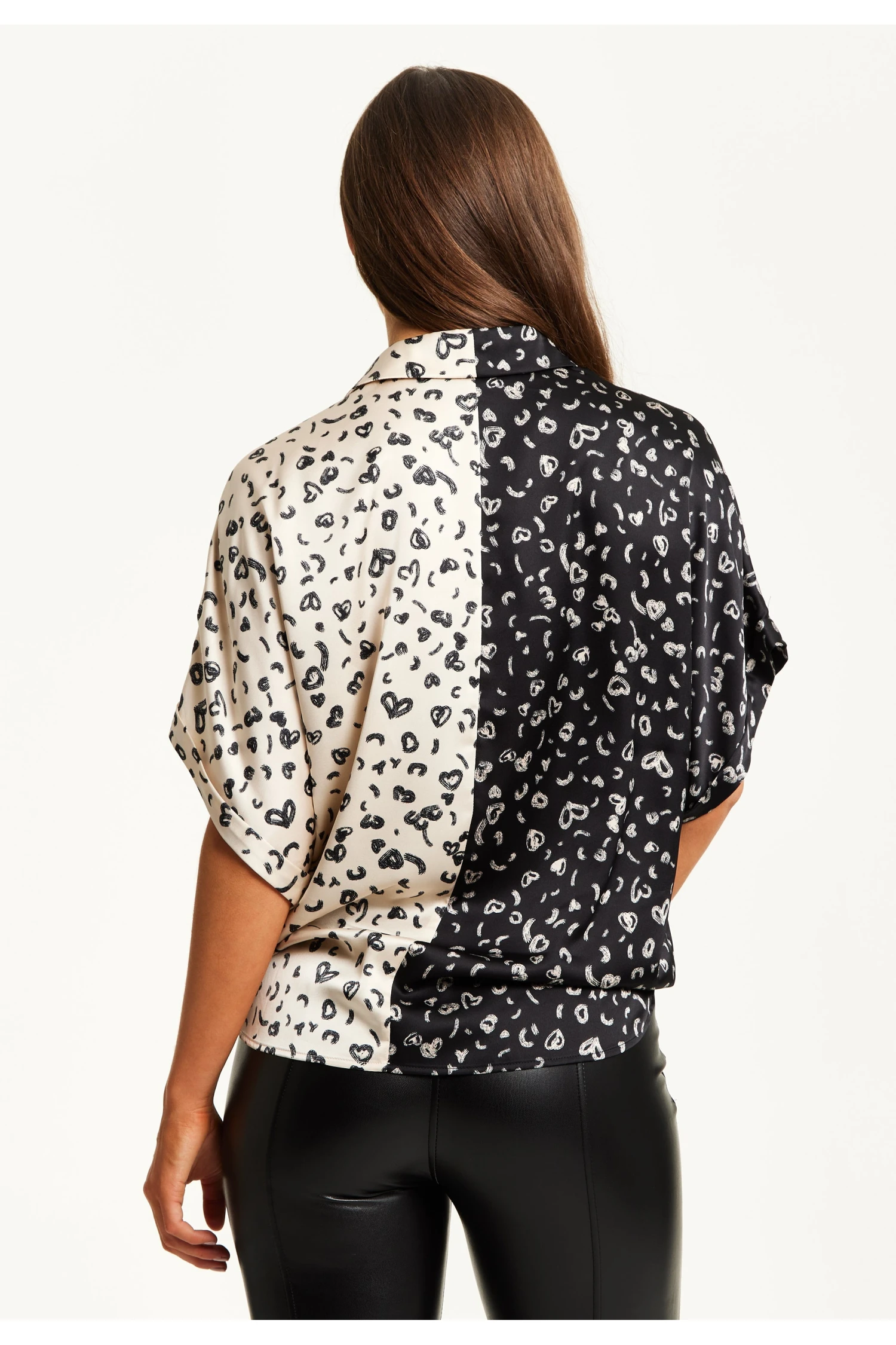 Liquorish Monochrome Heart Print Shirt With Short Sleeves