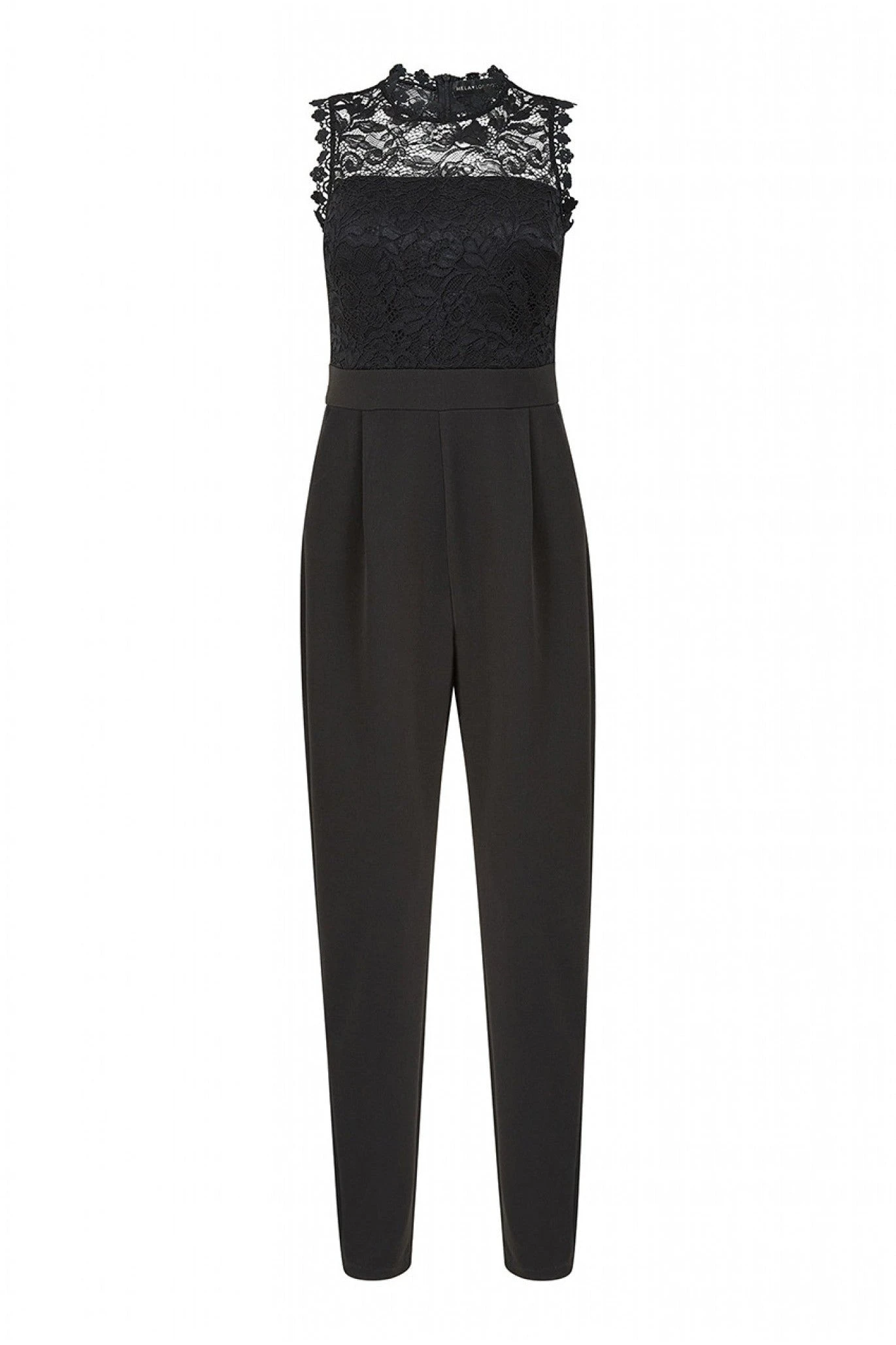 Mela London Black Lace Stretch Fitted Jumpsuit