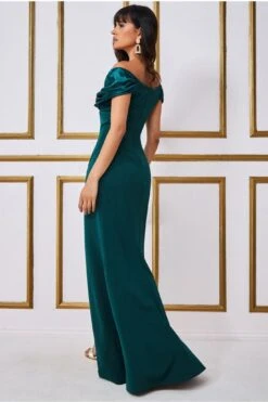 Goddiva Bardot Sequin Embroidered Maxi Dress – Emerald Green