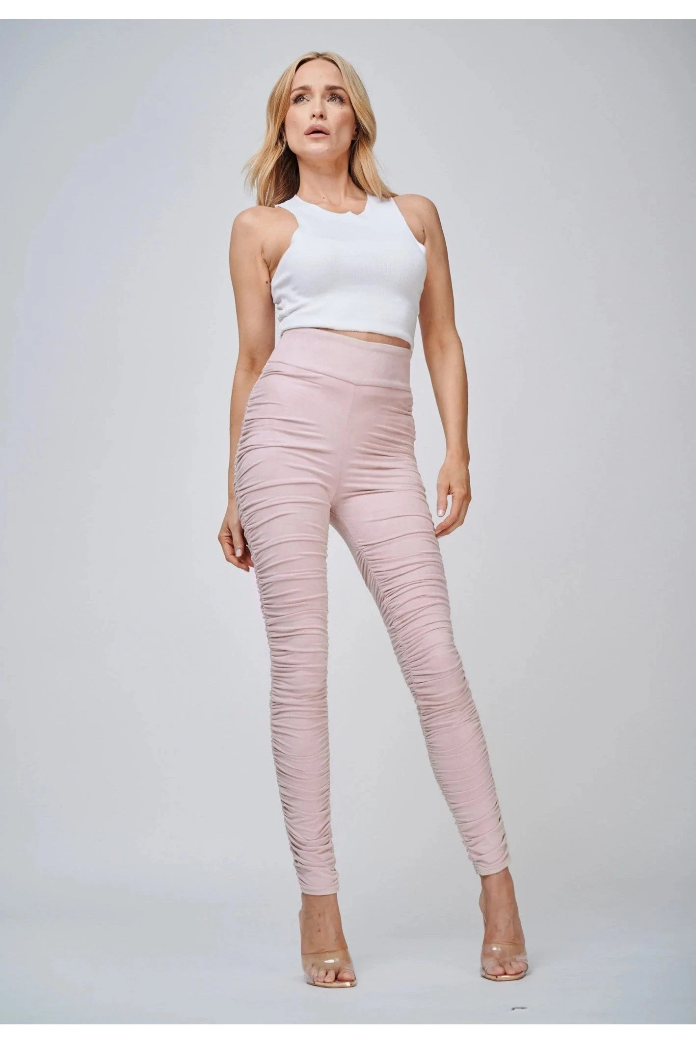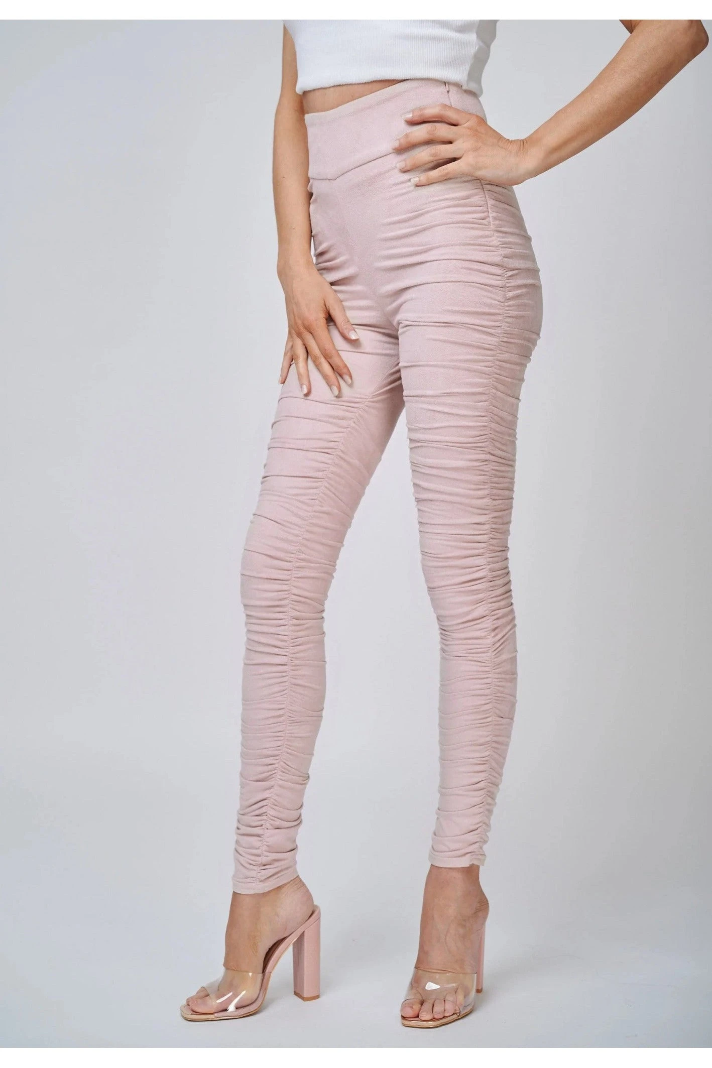 Yan Neo London The Hebe Blush Pink Ruched Suede-look Trouser