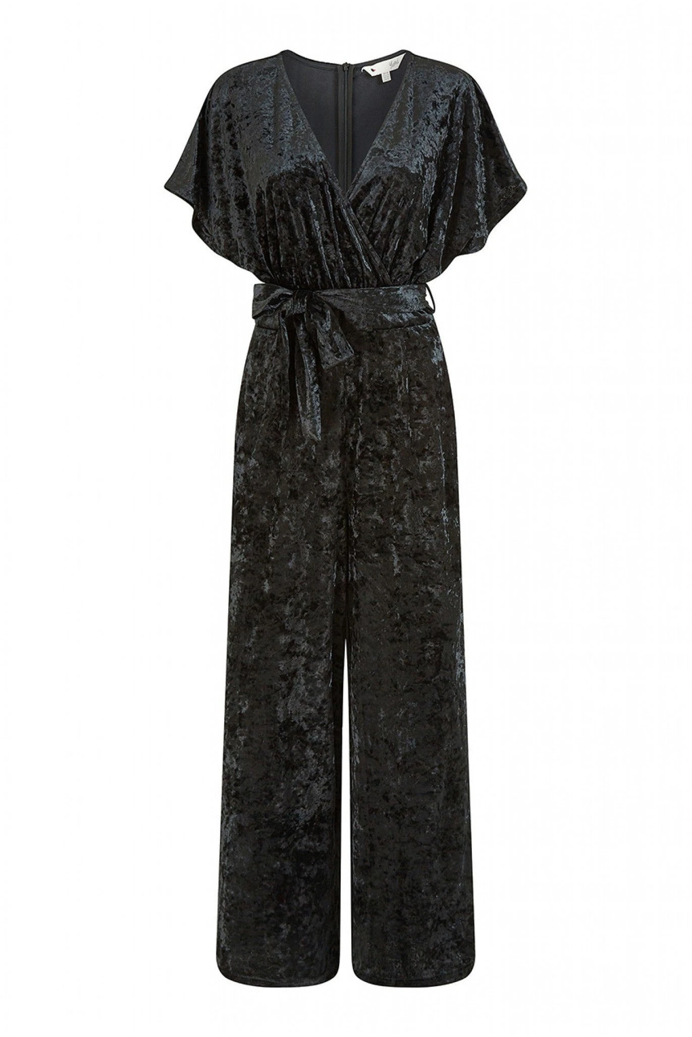 Black Velvet Kimono Sleeve Jumpsuit. With sumptuous crushed velvet in
