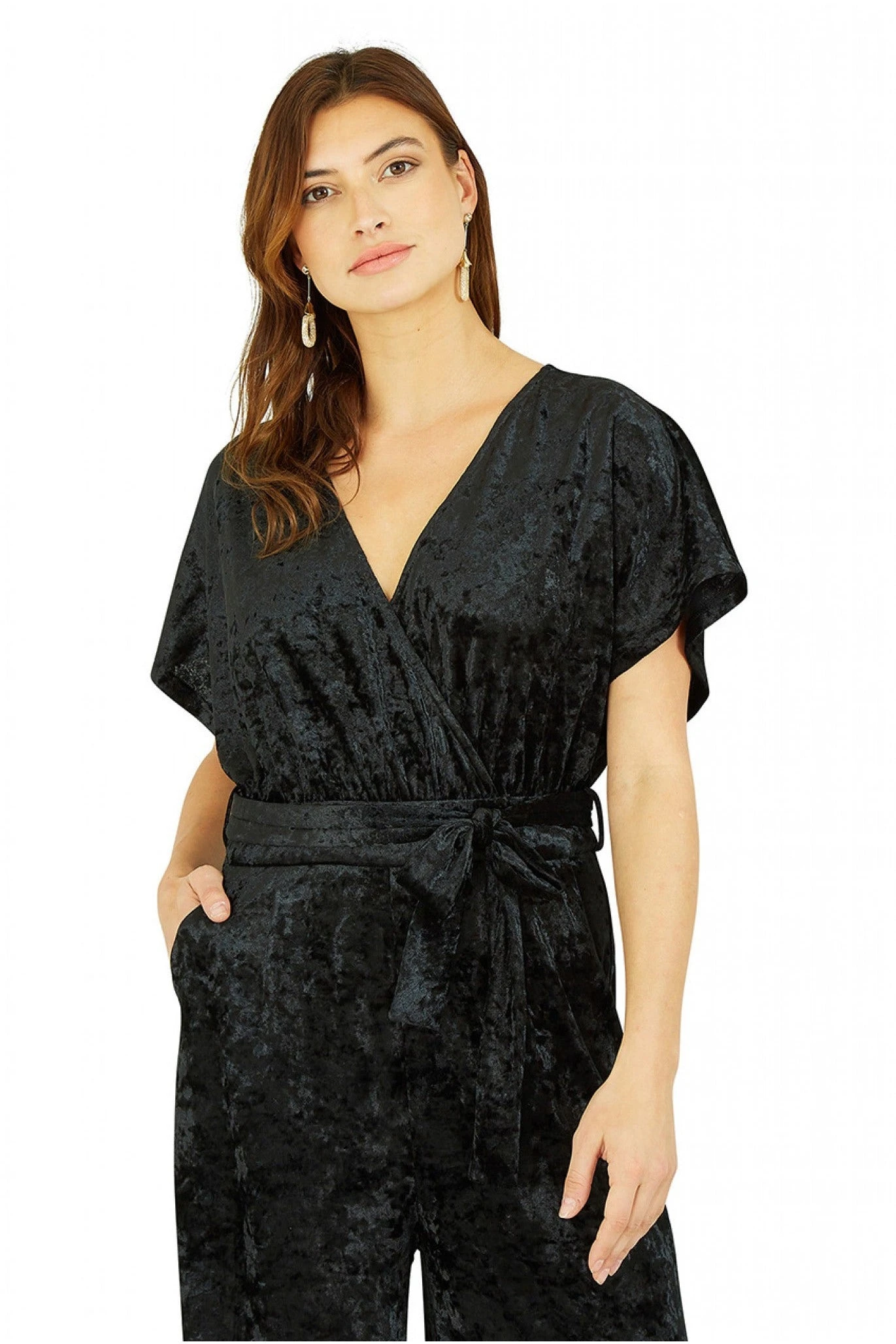 Yumi Black Velvet Kimono Sleeve Jumpsuit