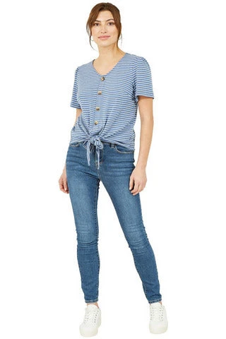 Be the first to review “Yumi Blue Striped Jersey Button Detail Top” Cancel reply