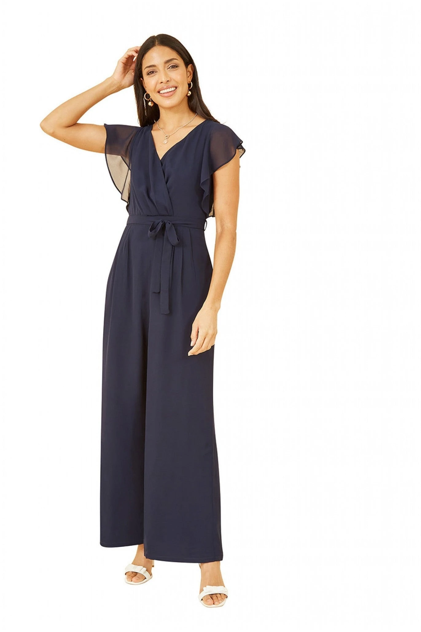 Yumi Navy Wrap Jumpsuit With Ruffle Sleeves